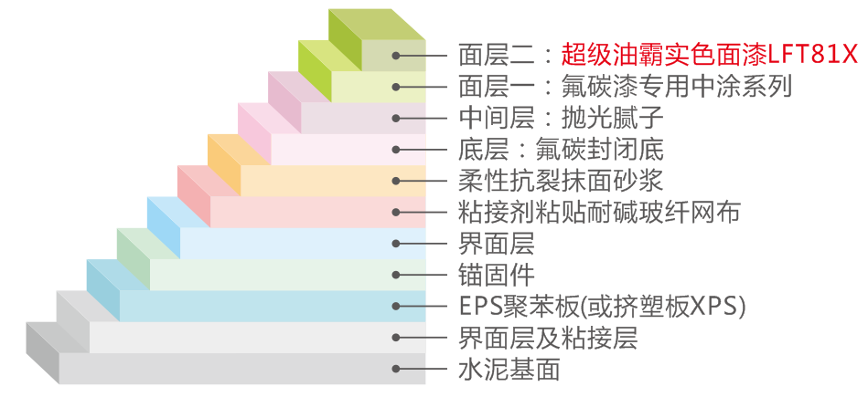 本產(chǎn)品是采用優(yōu)質(zhì)氟碳樹脂,超耐候性顏填料,高性能多功能助劑調(diào)配而成的雙組份超級(jí)耐候性涂料。