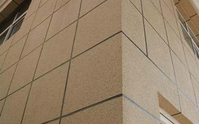 4.方形柱真石漆噴涂:方形柱棱角分明,很容易因噴涂不勻而使棱角模糊,為了噴涂方便,以約1250px的距離噴涂棱角,遠(yuǎn)距離噴涂,霧花散得開(kāi),面積大而均勻,如果距離太近,稍不注意就會(huì)噴厚,噴不均勻,使棱角線條顯現(xiàn)不出來(lái),失去了原有建筑的整體外觀美感。